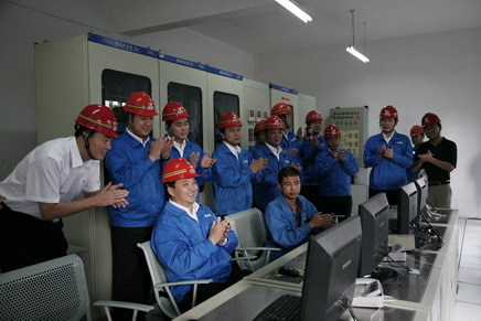![]() 图1 1号高炉点火现场,董总与董事会成员庆祝点火成功 10月15日下午,随着集团董事长、总裁董才平按在鼠标上的手指轻轻一点,我集团1号高炉技改项目正式点火投产,这是集团在今年4号高炉、二轧一线、140平米烧结和二转炉相继点火以来,又一重大技改项目建成投产。