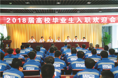 7月19日上午,集团2018届签约大学生入职欢迎会在办公大楼五楼第二会议室举行,集团及两大公司领导赵金涛、王郢、陈军召、耿冬雷等及各生产厂负责人、全体签约大学生共100余人参加典礼。