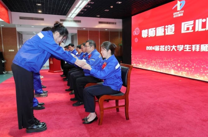 集团执行董事、副总裁赵金涛指出,一直以来,集团十分注重尊师重教的优秀传统,保留着拜师礼的仪式感,希望每位2024届签约大学生向往届优秀大学生看齐,在师傅的悉心指导下,迅速成长为企业中坚力量。